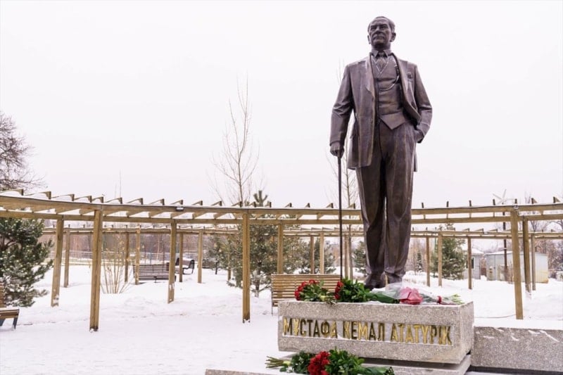 Almatı'da Türkiye'nin 100. yılı nedeniyle bir de Atatürk heykeli yaptırıldı.