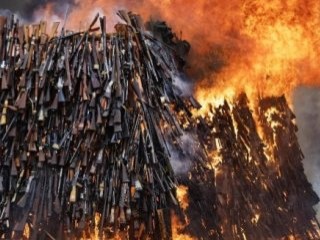 Başkent Nairobi yakınlarındaki Ngong tepelerine yığılan 5 bin 250 adetten fazla silah, üç büyük öbek oluşturdu. Görevlilerin benzin döküp silahları ateşe vermesiyle, alevler metrelerce yükseğe çıktı. Halka açık alandaki silah imhasını, yüzlerce kişi izledi.
