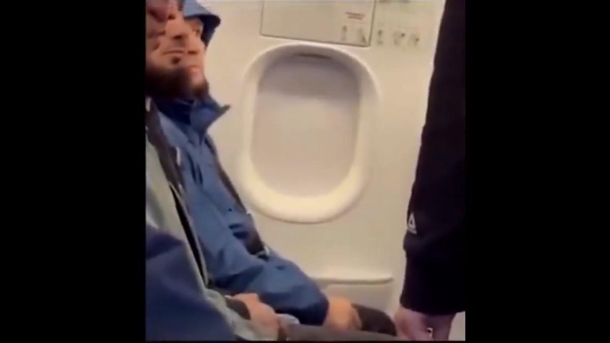 Hostesin kendisine söylediklerine sakince yanıt veren Khabib, buna rağmen uçaktan indirildi ve hostesin ikna olmadığı görüldü.