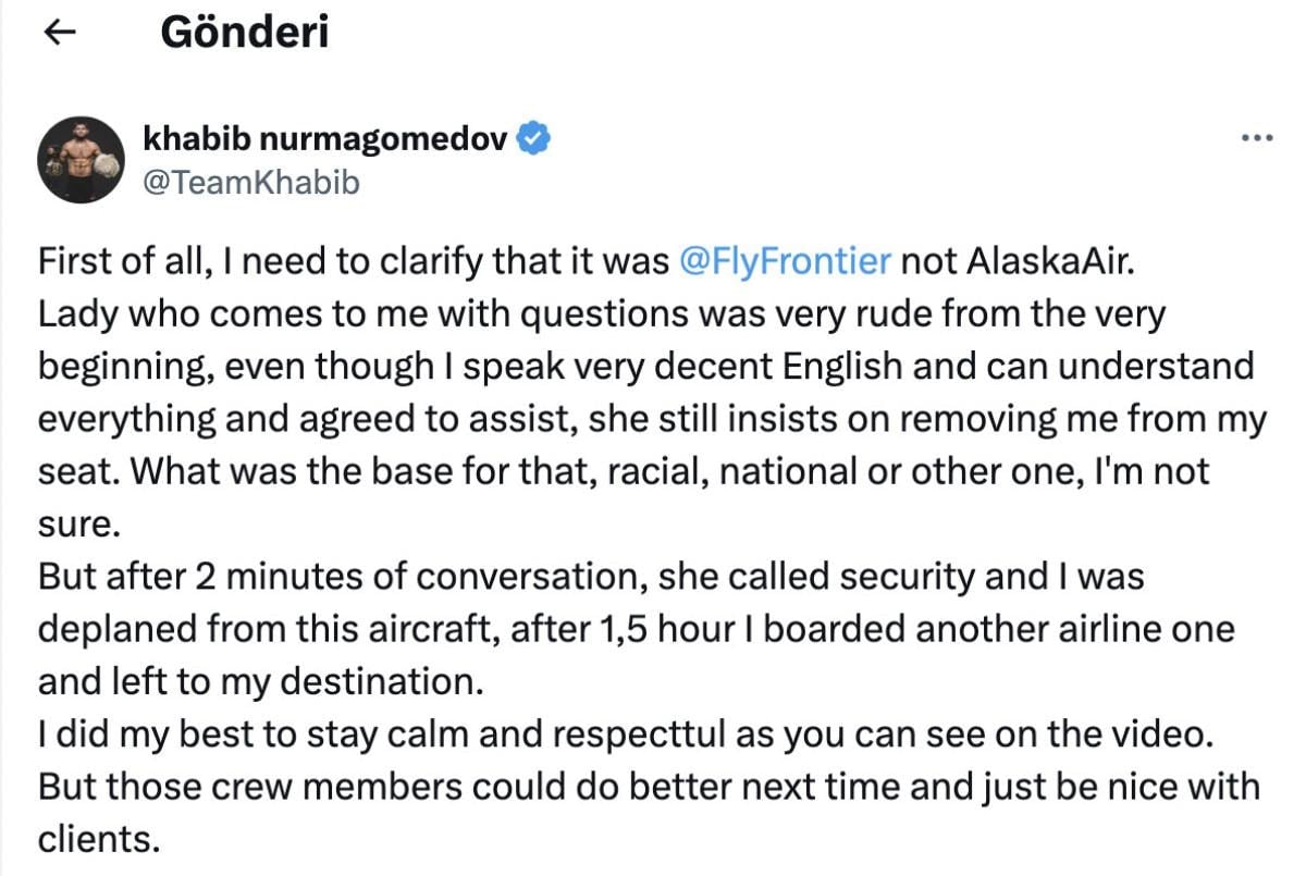 Khabib Nurmagomedov'un X hesabından yaptığı açıklamanın detayları şöyle: