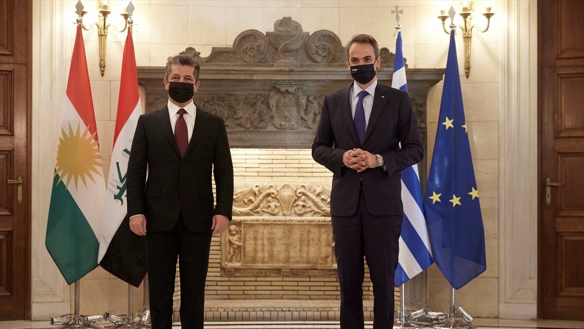 Yunanistan Başbakanı Kiryakos Miçotakis ile Irak Kürt Bölgesel Yönetimi (IKBY) Başbakanı Mesrur Barzani, bir araya geldi.