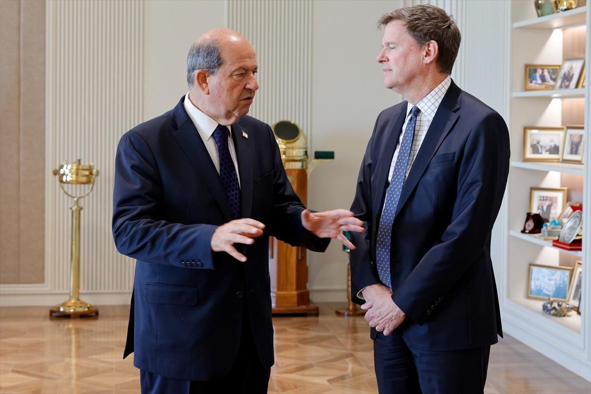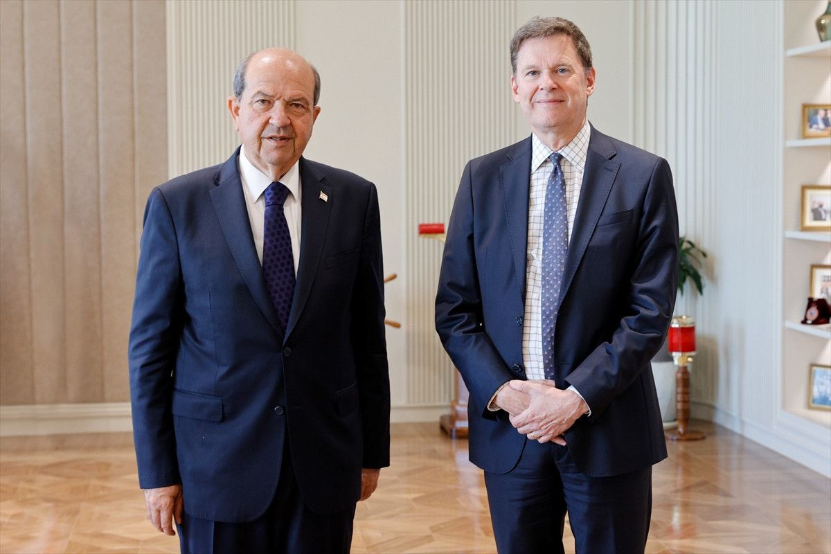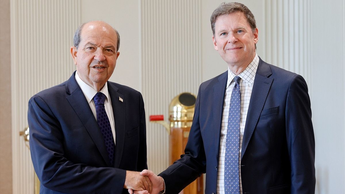 KKTC Cumhurbaşkanlığı Ofisi'nde gerçekleşen kabulde, Tatar ile Stewart yaklaşık bir saat görüştü.