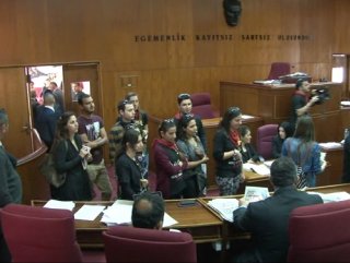 KKTC Meclisi önünde eylem yapan Kıbrıs Türk Öğretmenler Sendikası (KTÖS) ve Kıbrıs Türk Orta Eğitim Öğretmenler Sendikası’ndan (KTOEÖS) bir grup Meclis Genel Kurul toplantısını bastı.