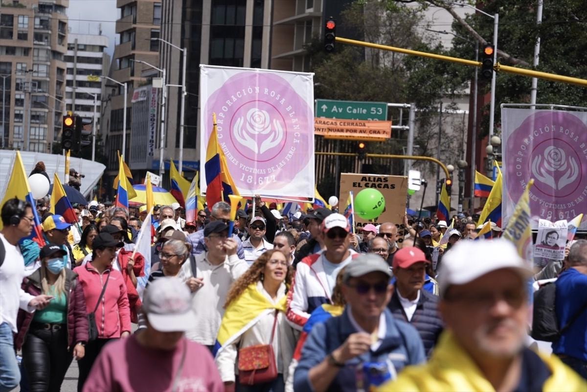 Bogota'daki Ulusal Park’ta bir araya gelen yüzlerce kişi, müzik ve sloganlar eşliğinde tarihi Bolivar Meydanı'na kadar yürüdü.