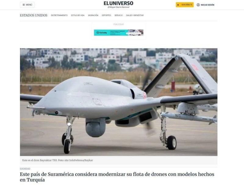 İspanyol basını El Universo, bir Güney Amerika ülkesinin mevcut insansız hava aracı envanterini, BAYKAR tarafından geliştirilen Bayraktar TB2 ile yenilemeyi planladığını aktardı.