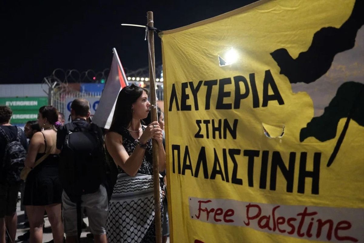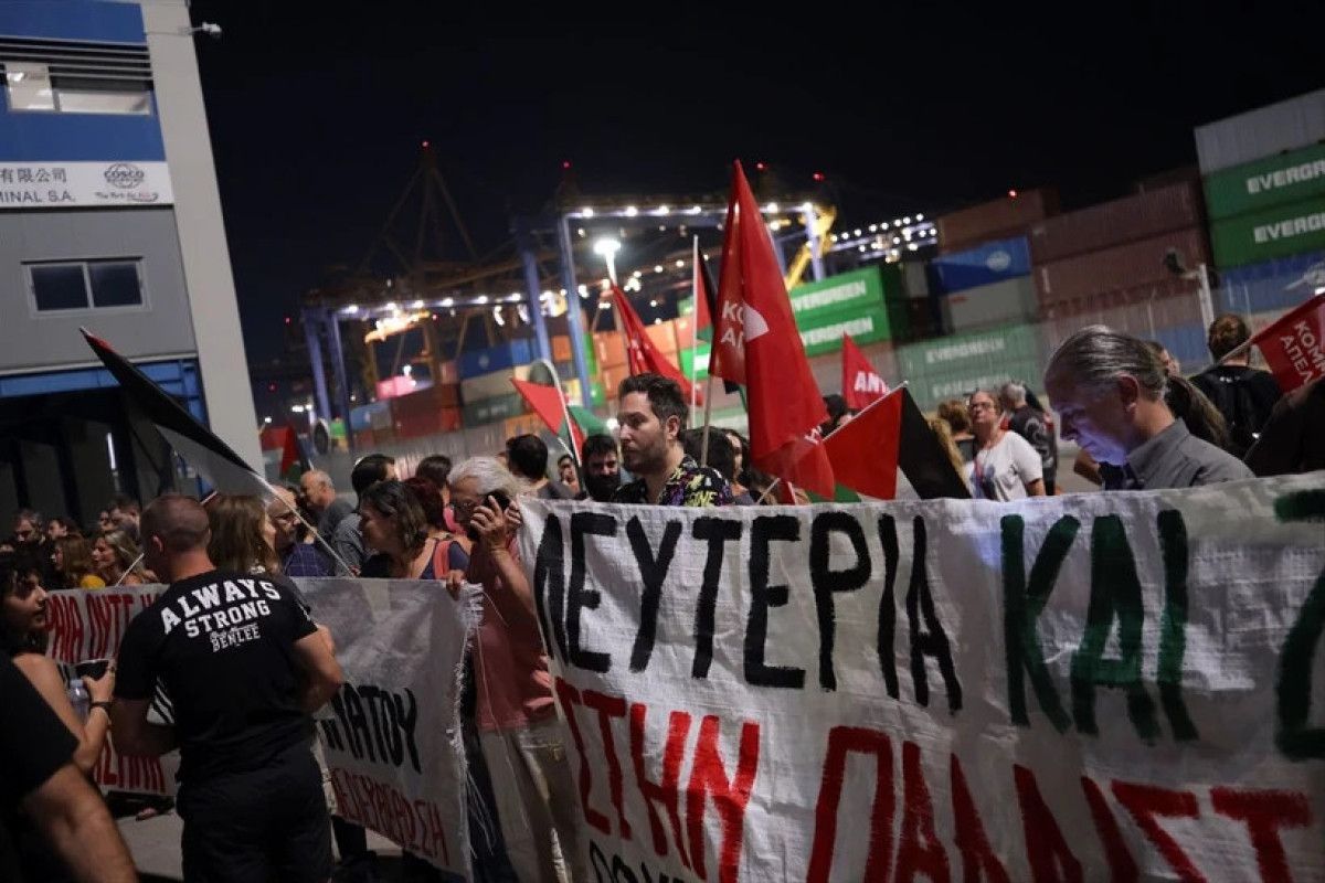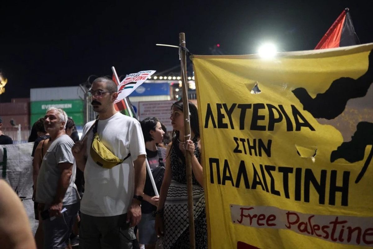 Yunanistan Konteyner Taşımacılığı İşçileri Birliği (ENEDEP), Yunanistan Komünist Partisine (KKE) bağlı İşçi Sendikası (PAME) ve Pire İşçileri Birliği'nin ortak çağrısıyla düzenlenen eyleme, Gazze'ye destek vermek isteyen işçi ve sendikalıların yanı sıra öğrenciler katıldı.