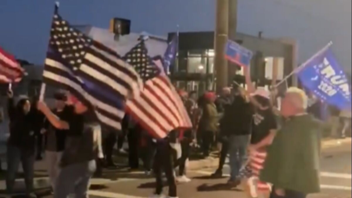 Göstericiler, bir yol boyunca 2020 Başkanlık seçimleri sürecinde zorlu günlerden geçen Trump'a destek pankartlar açtı, araçlardan kornalar çalındı.
