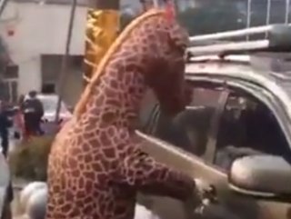 Çinli bir adam, zürafa kostümü giyerek kendini vürise karşı korumaya çalıştı. Elindeki alışveriş poşetleriyle aracına yönelen zürafa kostümlü Çinli, çevredeki gülüşmelere aldırış etmeden yoluna devam etti.