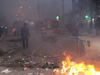 Protesto gösterisinin düzenlendiği ve gösterici ile polis arasında yaşanan çatışmanının şiddeti, gösterinin düzenlediği meydan ve caddelerdeki maznzaralar yansıttı. Protesto gösterisinin düzenlendiği “İskender Bey” , “Rahibe Teresa” ile “Zahir Payaziti” meydanları ile ana caddelerdeki taş yığınları, sökülmüş kaldırım taşları, yanan çöp konteynerleri, görülen manzara oldu.