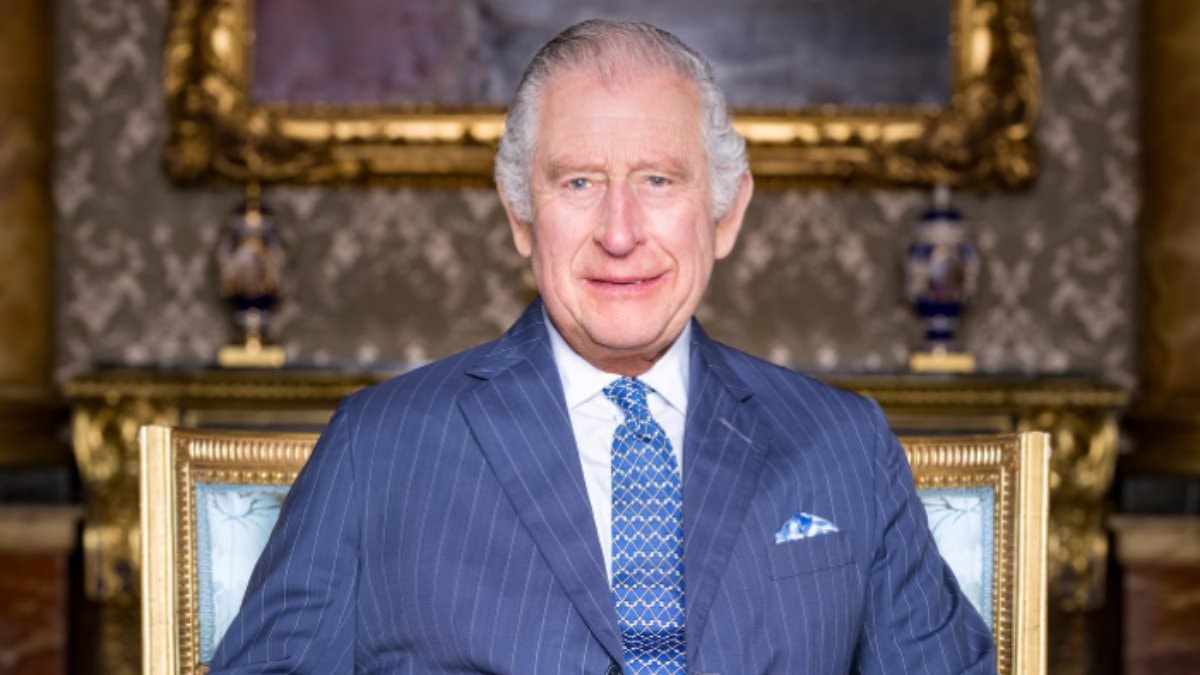 Kral Charles kraliyet kıyafetleriyle, imparatorluk tacı, küresi ve asasıyla birlikte poz verdi.