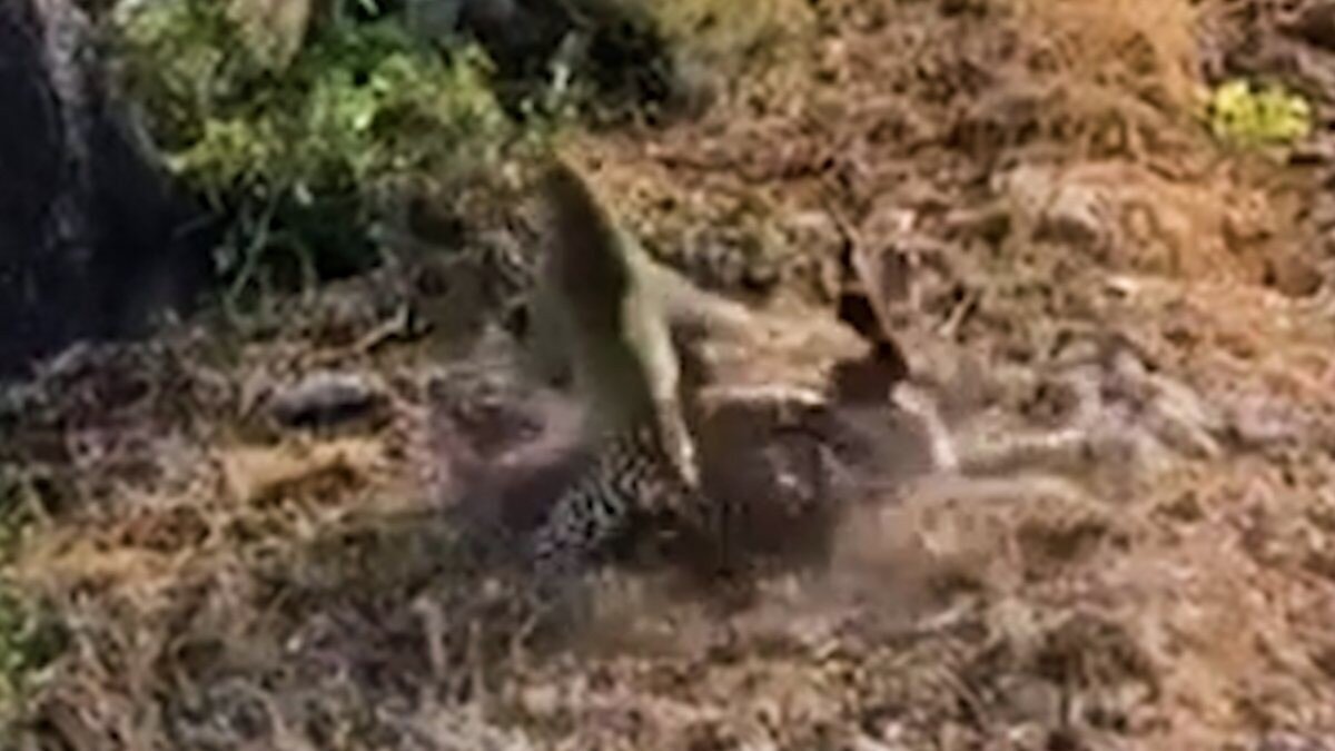 Ağaçta başlayan kavga yerde devam etti. Birbirlerini acımasızca pençeleyen leoparlar, grup tarafından saniye saniye kaydedildi.