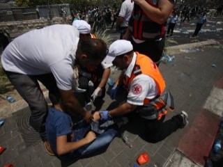 İsrail polisinin plastik mermi, ses bombası ve göz yaşartıcı gaz kullanması sonucu onlarca kişi yaralandı. Bazı noktalarda polis köpekleri kullanıldı.
