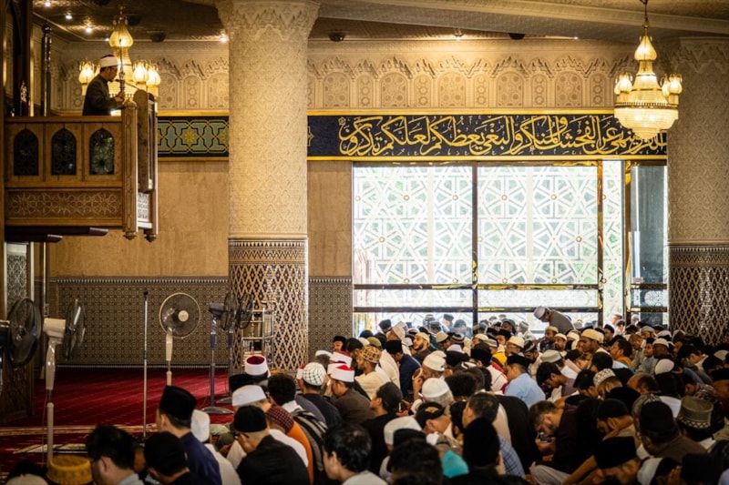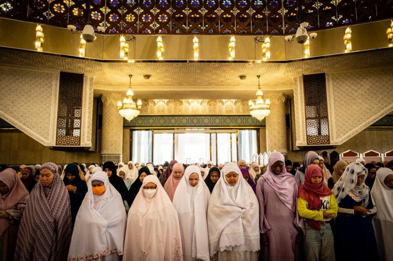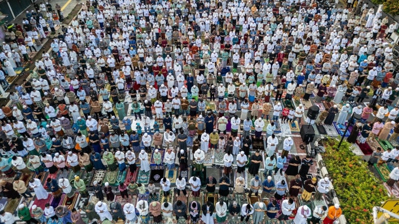Malezya'nın başkenti Kuala Lumpur'da bulunan Malezya Ulusal Camisinde bir araya gelen müslümanlar bayram namazını kıldı.
