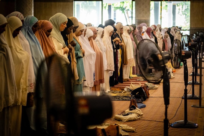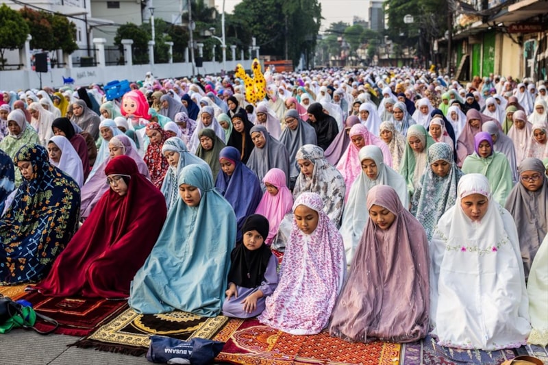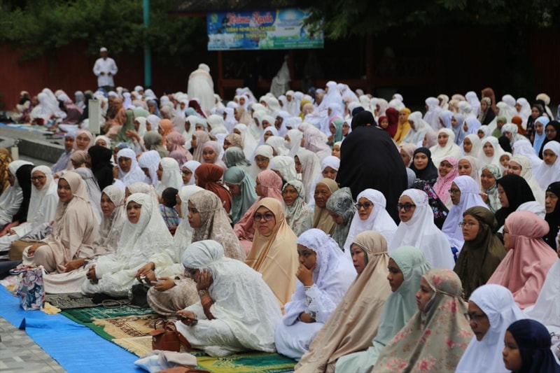 Gencinden yaşlısına çok sayıda Endonezyalı bayram namazında buluştu. Çocuklar ve kadınlar da namaz kıldı.