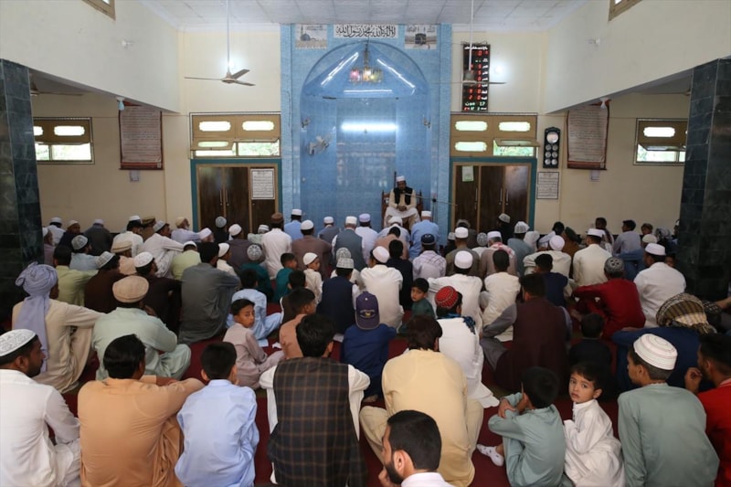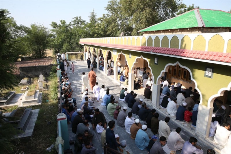 Pakistan'da Müslümanlar, Azad Cammu Keşmir bölgesinde bulunan Balakot şehrinin Sultan Jabri köyündeki Osmaniye Camisi'nde bir araya geldi.