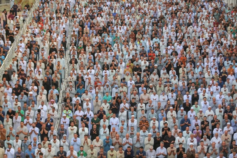 Müslümanlar, Kurban Bayramı namazının sevincini birlikte yaşarken, namaza katılımın yoğun olması hasebiyle yüzlerce kişi namazlarını caminin avlusunda kıldı.