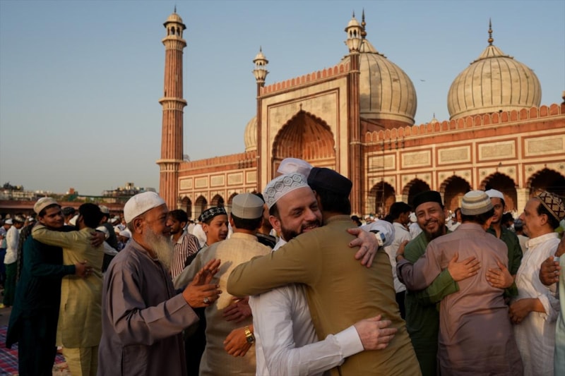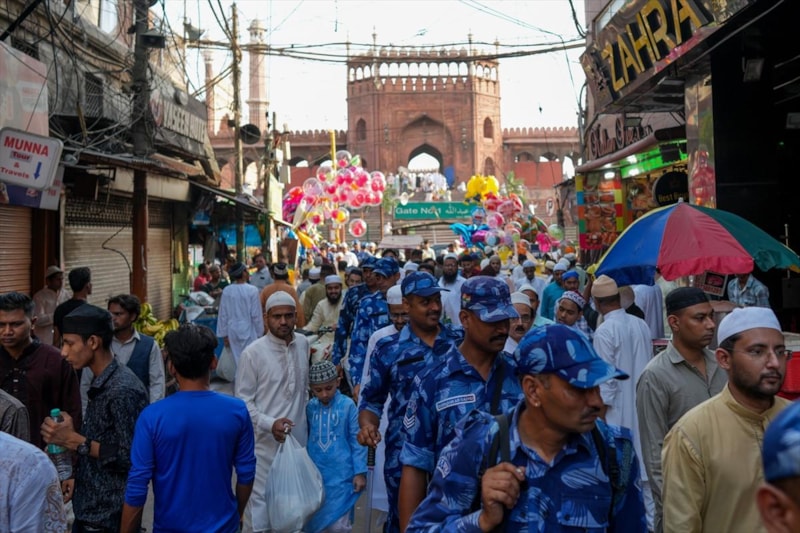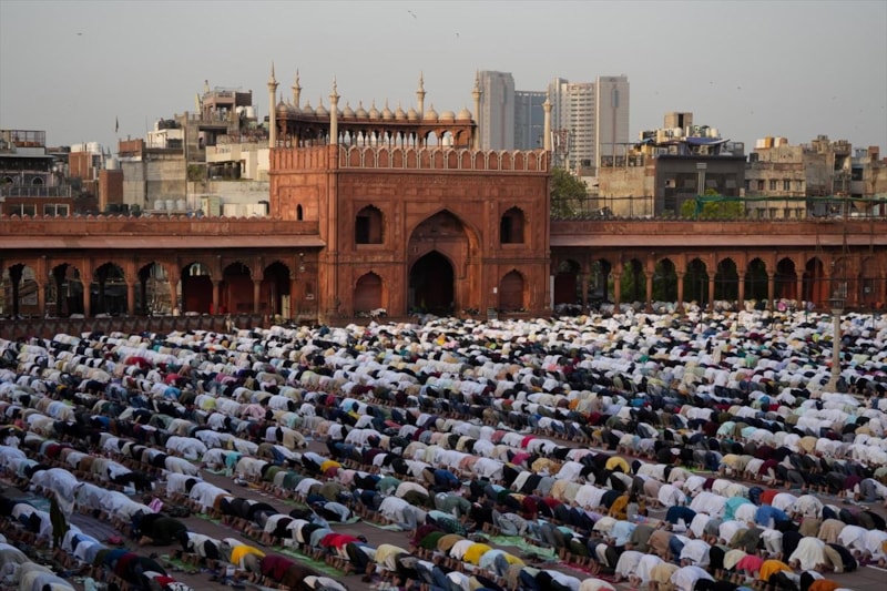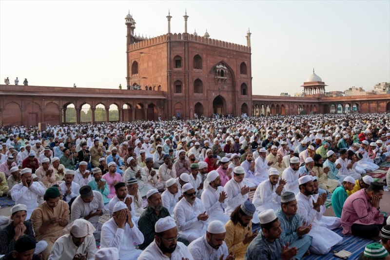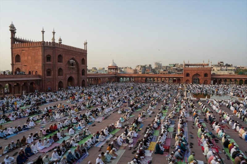 Hindistan'ın başkenti Yeni Delhi'de binlerce Müslüman, kentin eski yerleşim yerindeki tarihi Jama Masjid'inde Kurban Bayramı namazını kılmak için bir araya geldi.