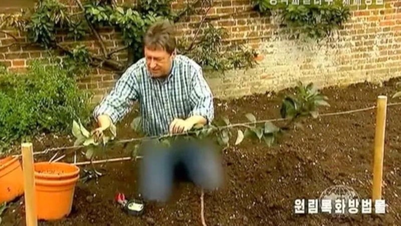 BBC'de yayınlanan 'Bahçe Sırları' programının eski bir bölümünü veren Kuzey Kore devlet televizyonu, sunucu Alan Titchmarsh'ın kot pantolonunu sansürledi.