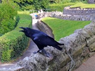 İngiltere'nin Yorkshire bölgesi'nde tarihi kalenin surlarında ilginç bir görüntü kaydedildi. Surun tam kenarında tüneyen kuzgun, arkasında duran turistlere "hello" (merhaba) dedi.