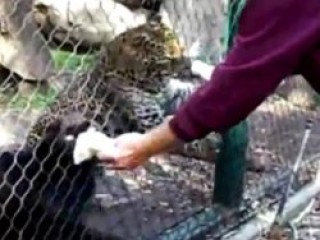 Fareleri yedirirken pençesini adamın eline geçiren leopar, az kalsın elini kopartacaktı.