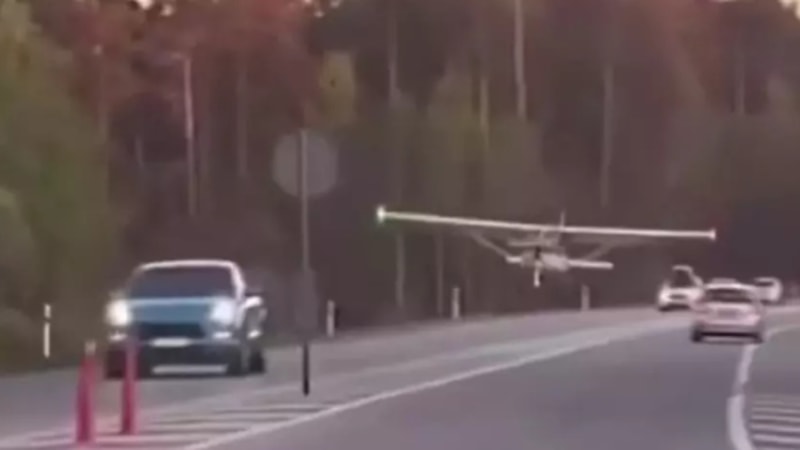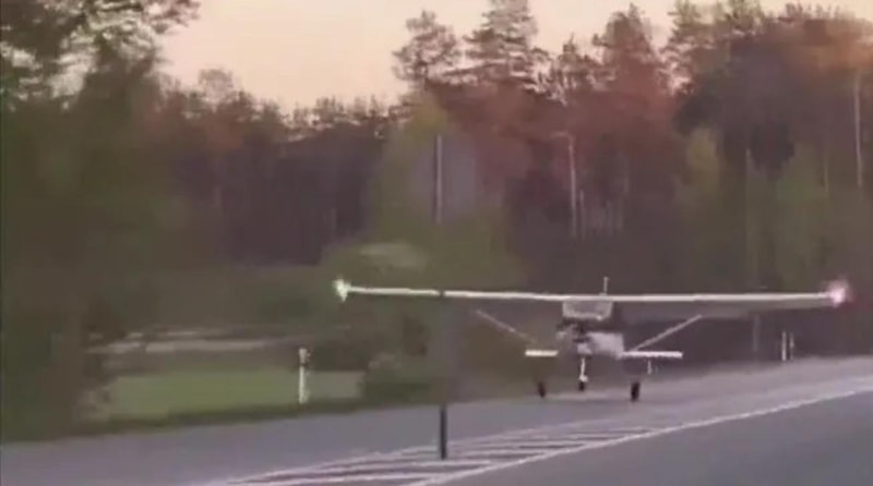 Letonya’da küçük uçak otoyola acil iniş yaptı. O anlar saniye saniye kaydedildi.
