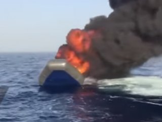 Mülteciler, sahil güvenlik ekipleri tarafından başka bir gemiye aktarıldı. Bu sırada da mültecilerin şişme botu ateşe verildi.