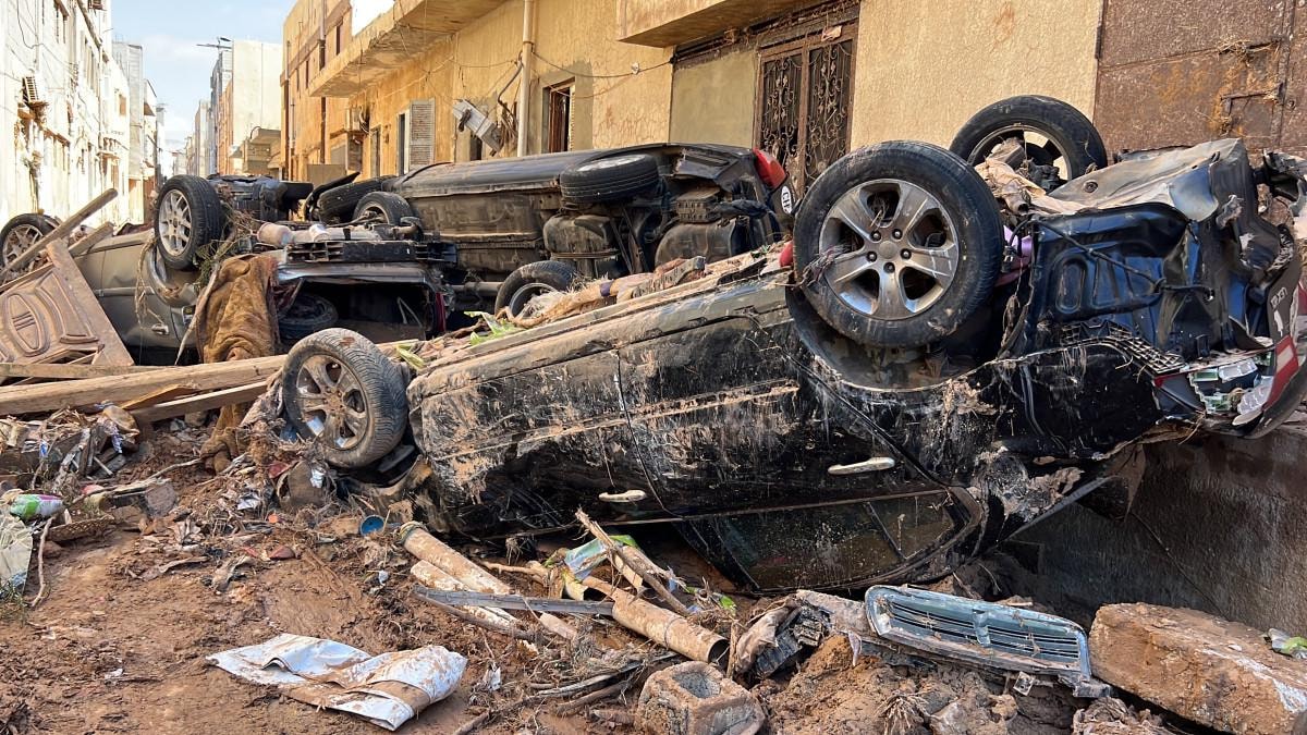 Etkili olan şiddetli yağışlar ve 2 barajın çökmesi sonucu meydana gelen sel felaketi, Derne kentinde büyük yıkıma neden oldu.