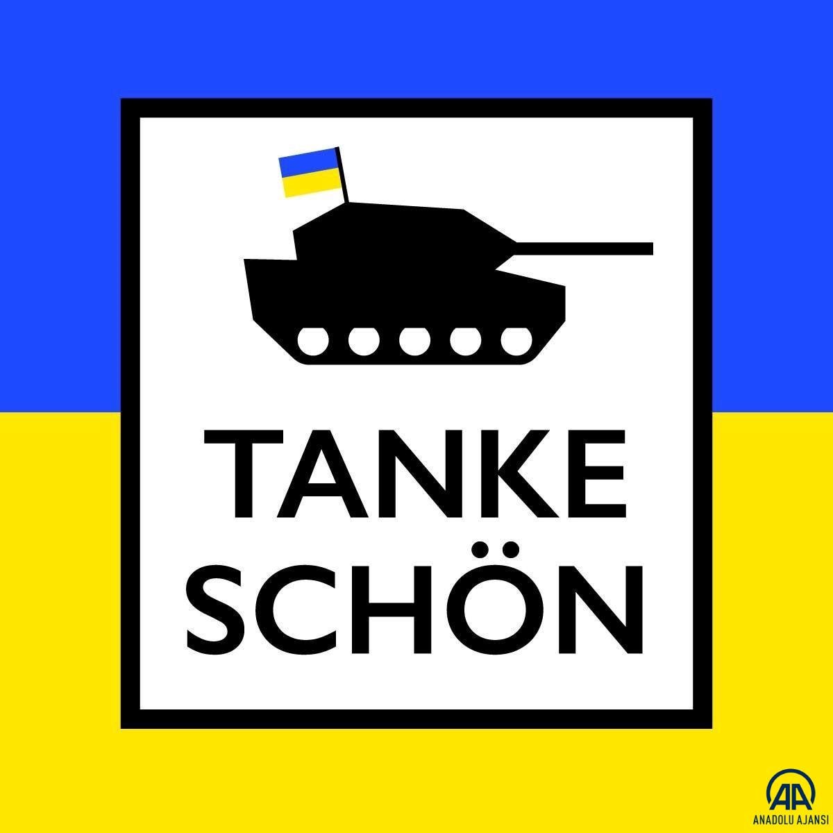 Ukrayna bayrağı taşıyan bir tank resmini paylaşan Landsbergis, söz konusu resimde "Tanke schön" ifadesine yer verdi.