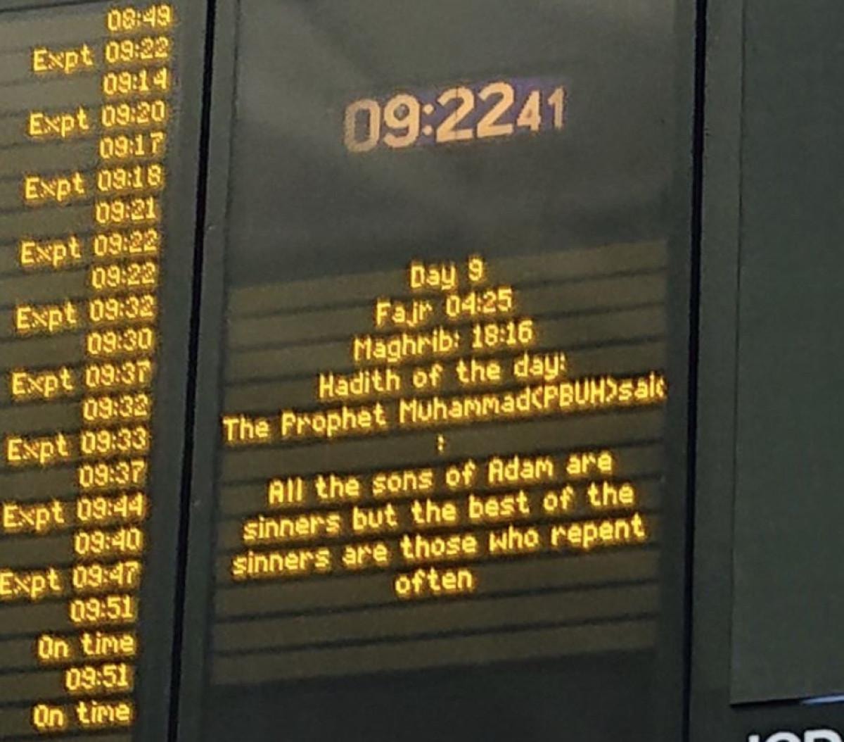 İngiltere'nin başkenti Londra'da yer alan bir tren istasyonundaki panoda, Ramazan ayı nedeniyle İslami mesajlar yayınlandı.