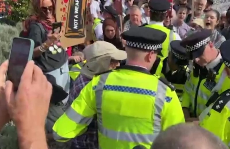 Londra Metropolitan Polisi, eylem sırasında gruba müdahale etti. Polis, “Palestine Action”ın yasaklı örgütlerden biri olduğunu hatırlatarak, çok sayıda kişiyi gözaltına aldı.