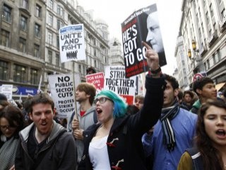 Binlerce öğrenci bugün Londra Parlamentosu önünde eğitim ücretlerini protesto etmek için gösteri düzenledi. Eğitime ayrılan bütçedeki kısıtlamalara karşı çıkan ve parasız eğitim hakkını savunan öğrencilere polis müdahale etti.