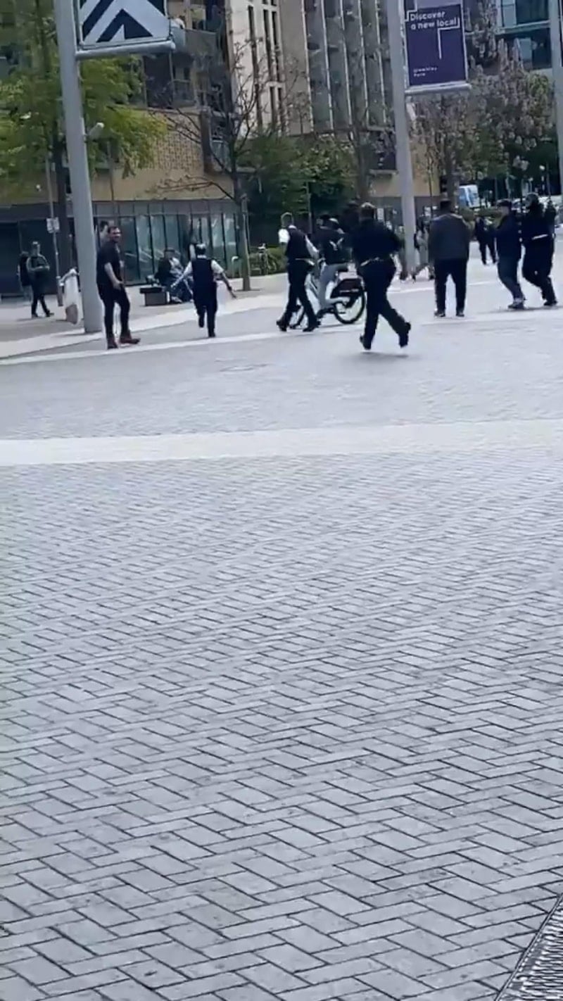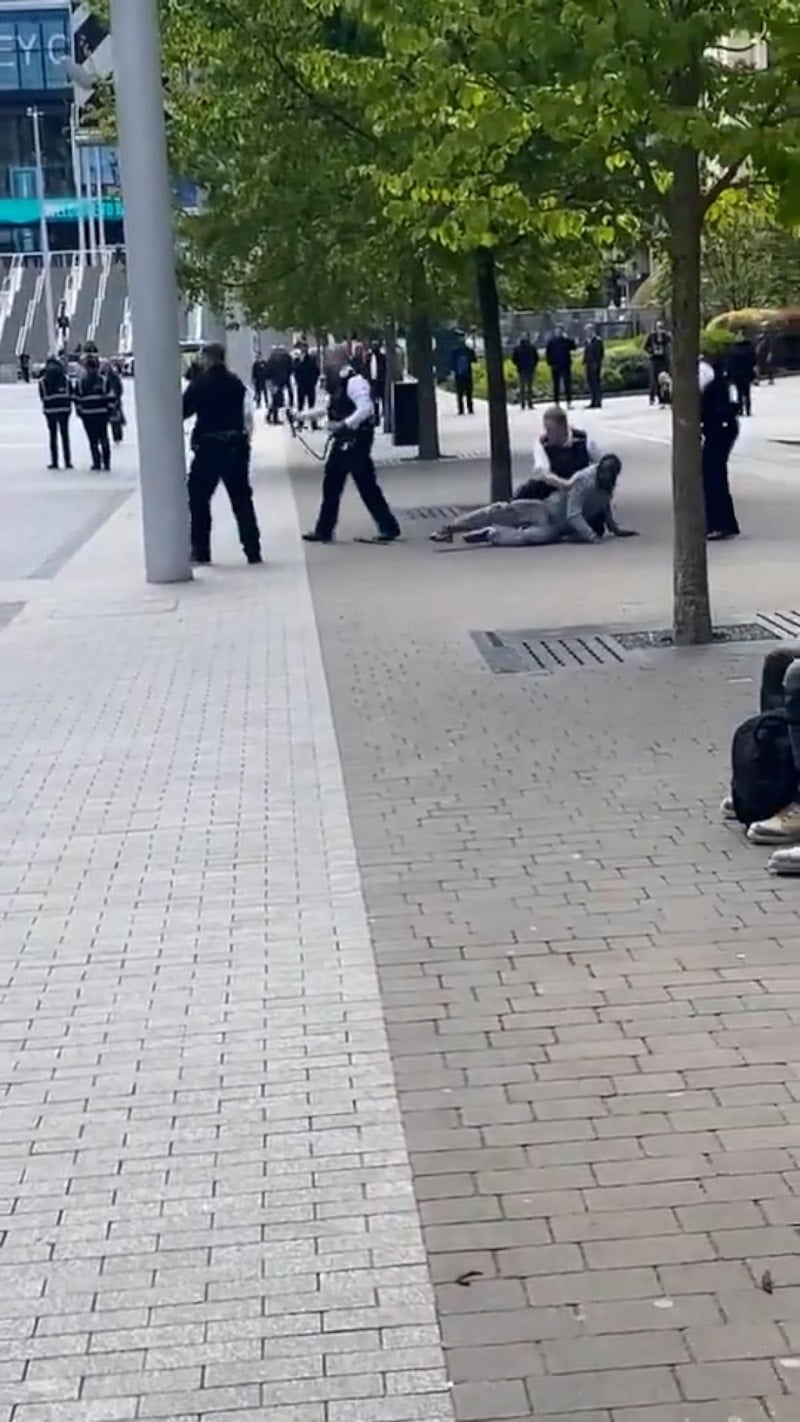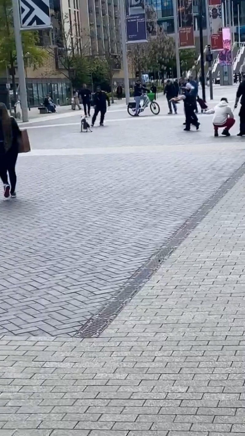 Tasmasız ve ağızlıksız bir köpek Londra'da polisi tarafından etkisiz hale getirilirken, o anlar bölgede bulunan vatandaşlar tarafından kaydedildi.