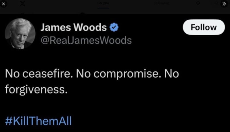 Woods, İsrail yanlısı tavırlarıyla sosyal medya hesaplarını adeta katliam çağrısı yapmak için kullanıyordu.