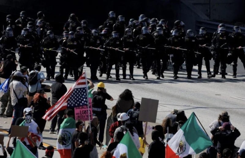 Los Angeles'ta bu politikalara duyulan öfke, başlangıçta barışçıl gösterilerle ifade edilse de, kısa sürede şiddetli çatışmalara ve yağma olaylarına dönüştü.