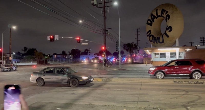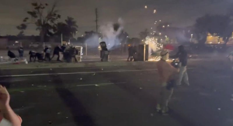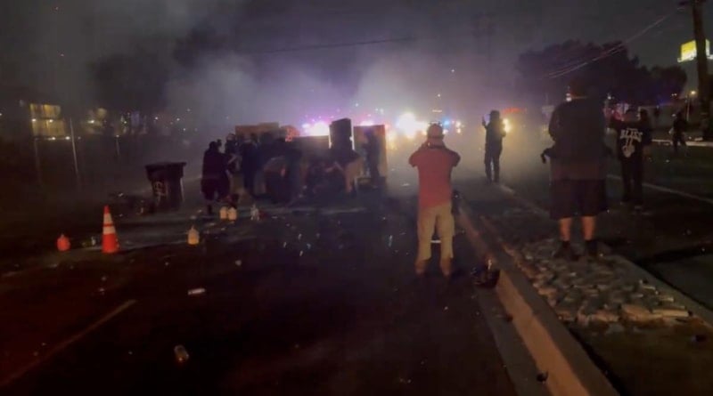 Los Angeles'ta gözaltılara tepki gösteren kalabalık, polise karşı kendi sokak savunmalarını kurmaya başladı.