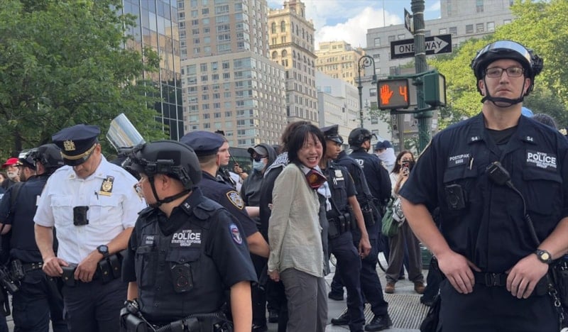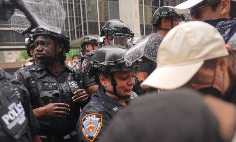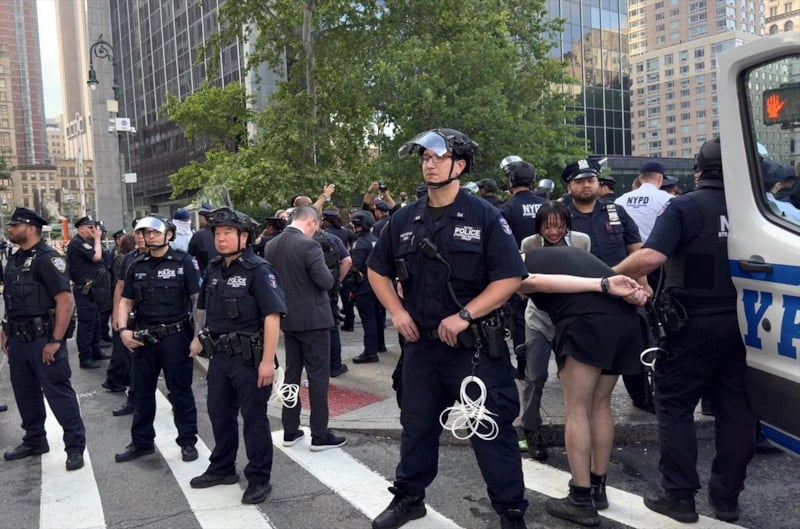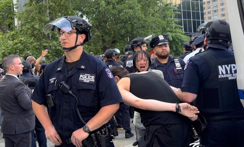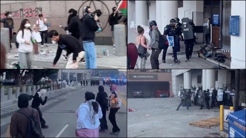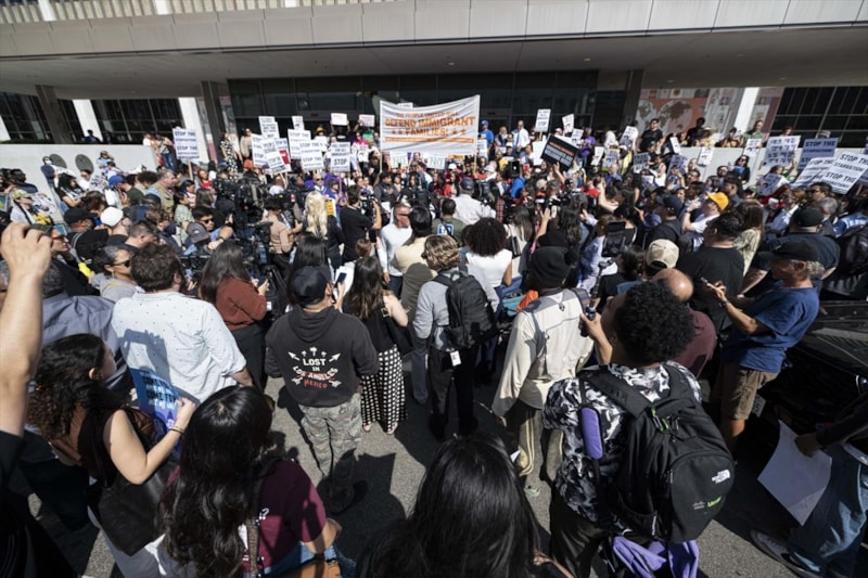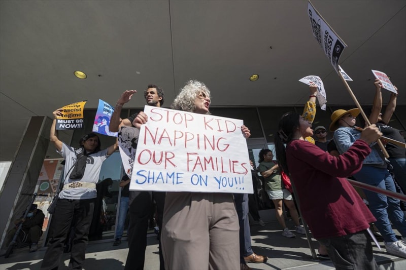 Down Town Los Angeles (DTLA) bölgesinde gerçekleştirilen gözaltılara tepki gösteren kalabalık, göçmen haklarını savunan sloganlar atarak güvenlik güçlerinin uygulamalarını eleştirdi.