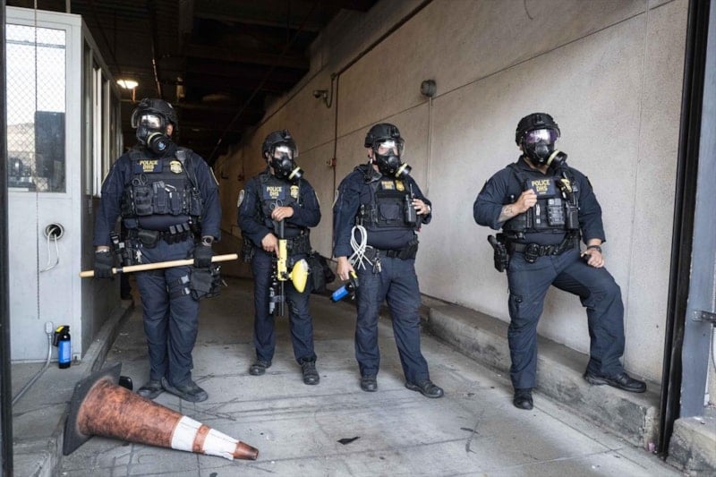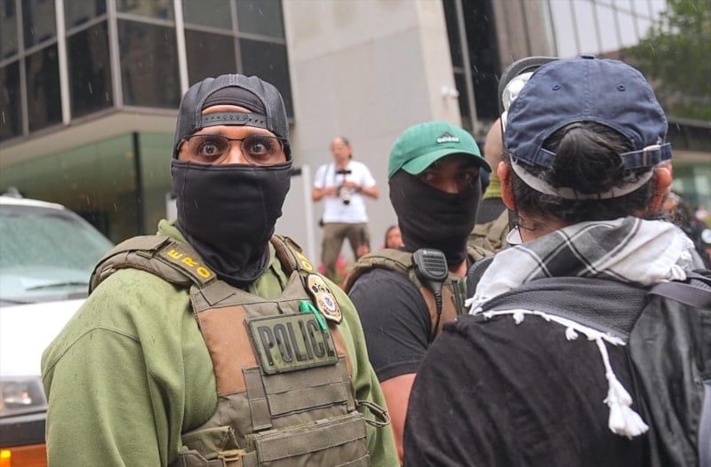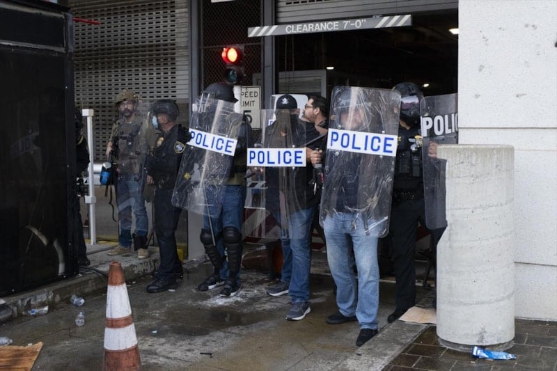 Federal Bina önünde toplanan göstericiler, FBI ve Göçmenlik ve Gümrük Muhafaza (ICE) ekiplerinin şehir merkezindeki yasadışı göçmenlere yönelik operasyonlarını protesto ederken, polisin de sert müdahalesi geldi.