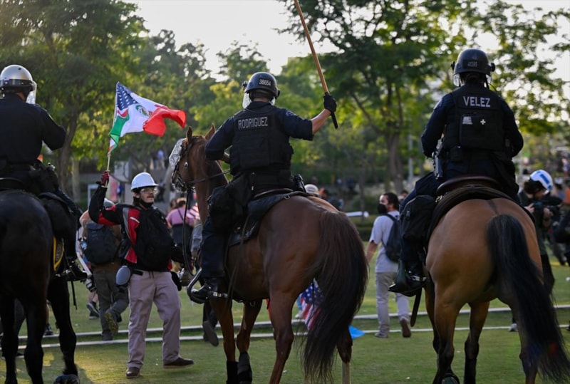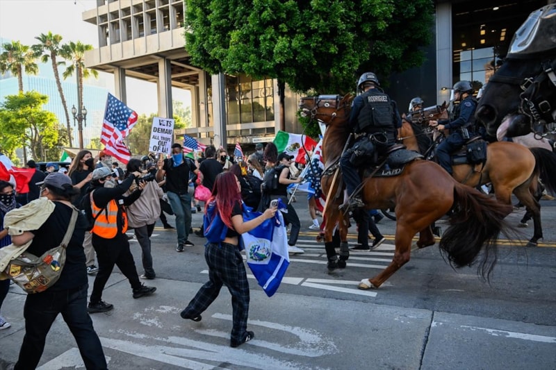 ABD'nin Los Angeles kentinde Göçmenlik ve Gümrük Muhafaza Dairesi (ICE) tarafından gözaltına alınan düzensiz göçmenlere destek amacıyla düzenlenen gösteriler sırasında çok sayıda kişi gözaltına alınmış, zaman zaman güvenlik güçleri ile protestocular arasında çatışmalar yaşanmıştı.