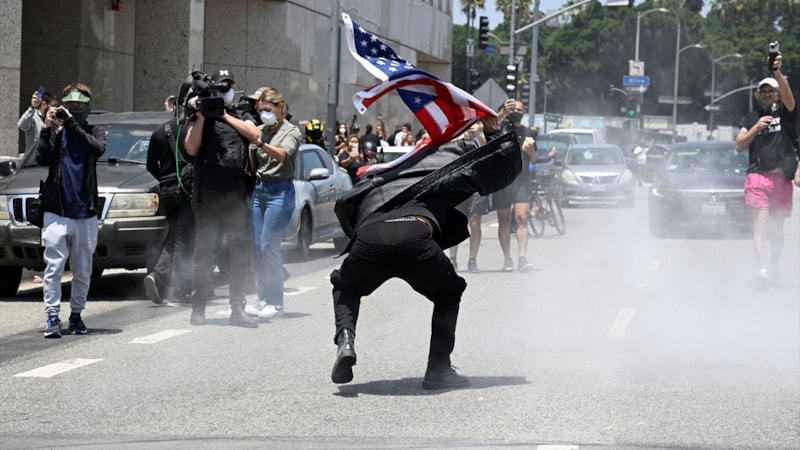 Los Angeles kentinde 3 gündür devam eden sınır protestolarında göstericiler ile güvenlik güçleri karşı karşıya gelmeye devam ediyor.