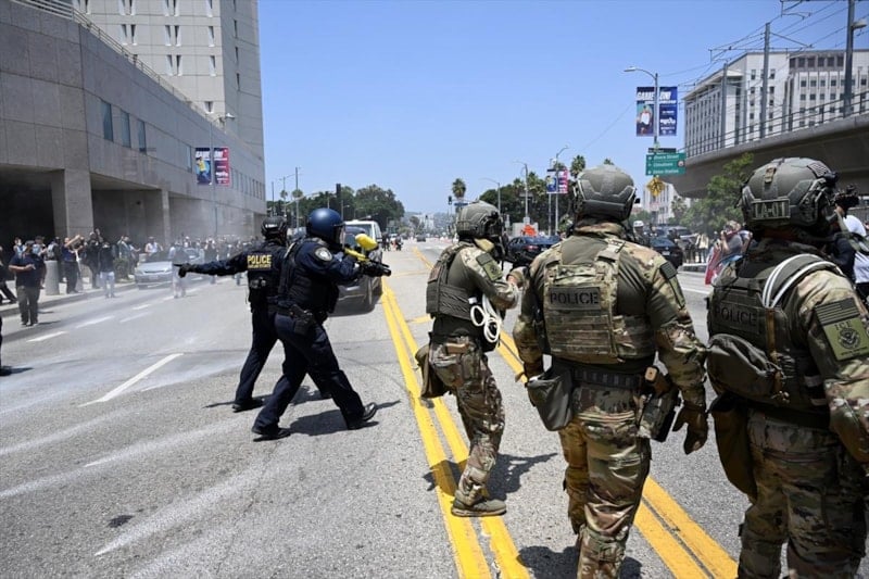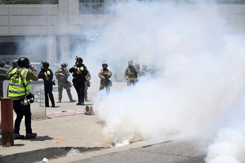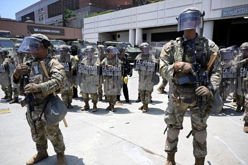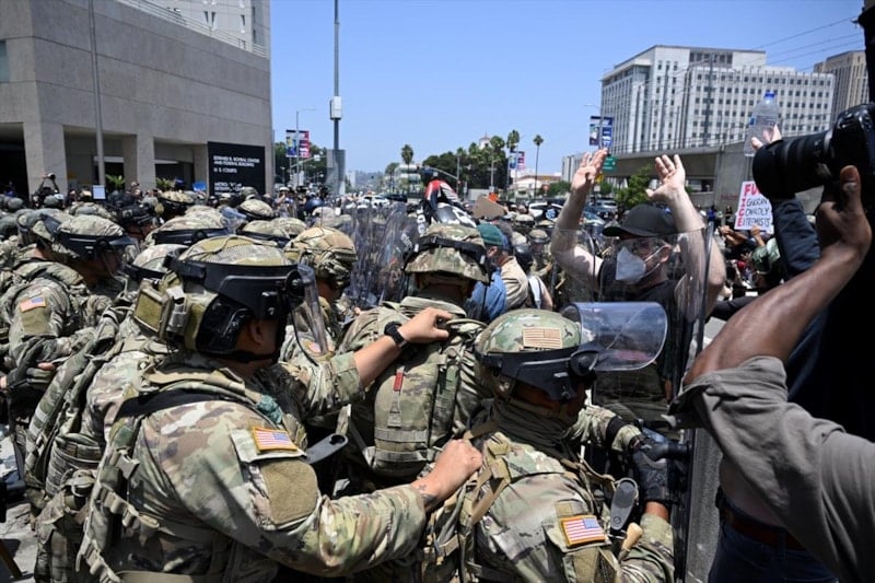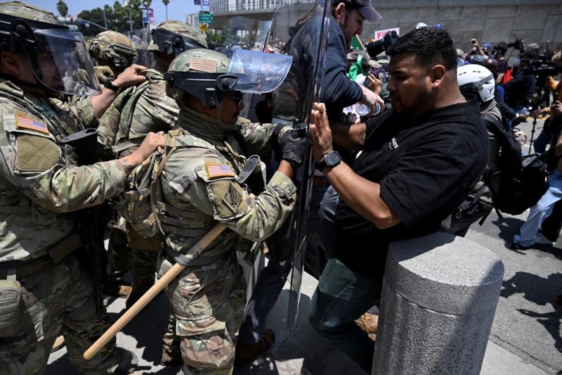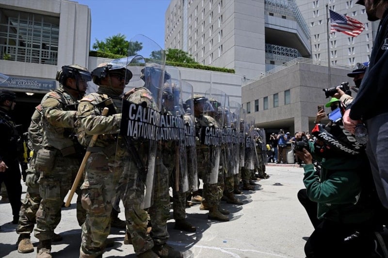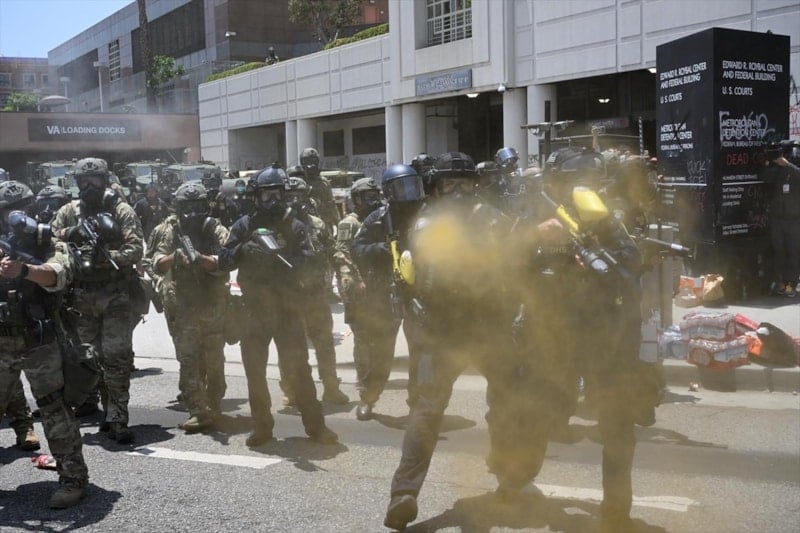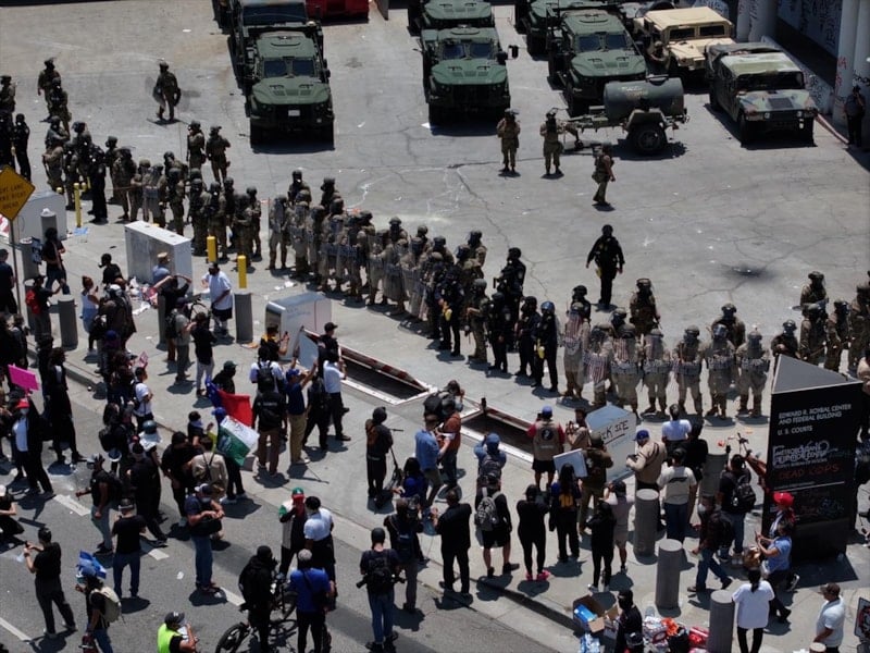Askerlerin bir kısmı, son iki gün içinde yüzlerce gösterici ile federal kolluk kuvvetleri arasında çatışmaların yaşandığı Los Angeles şehir merkezindeki Metropolitan Tutukevi civarına gönderildi.