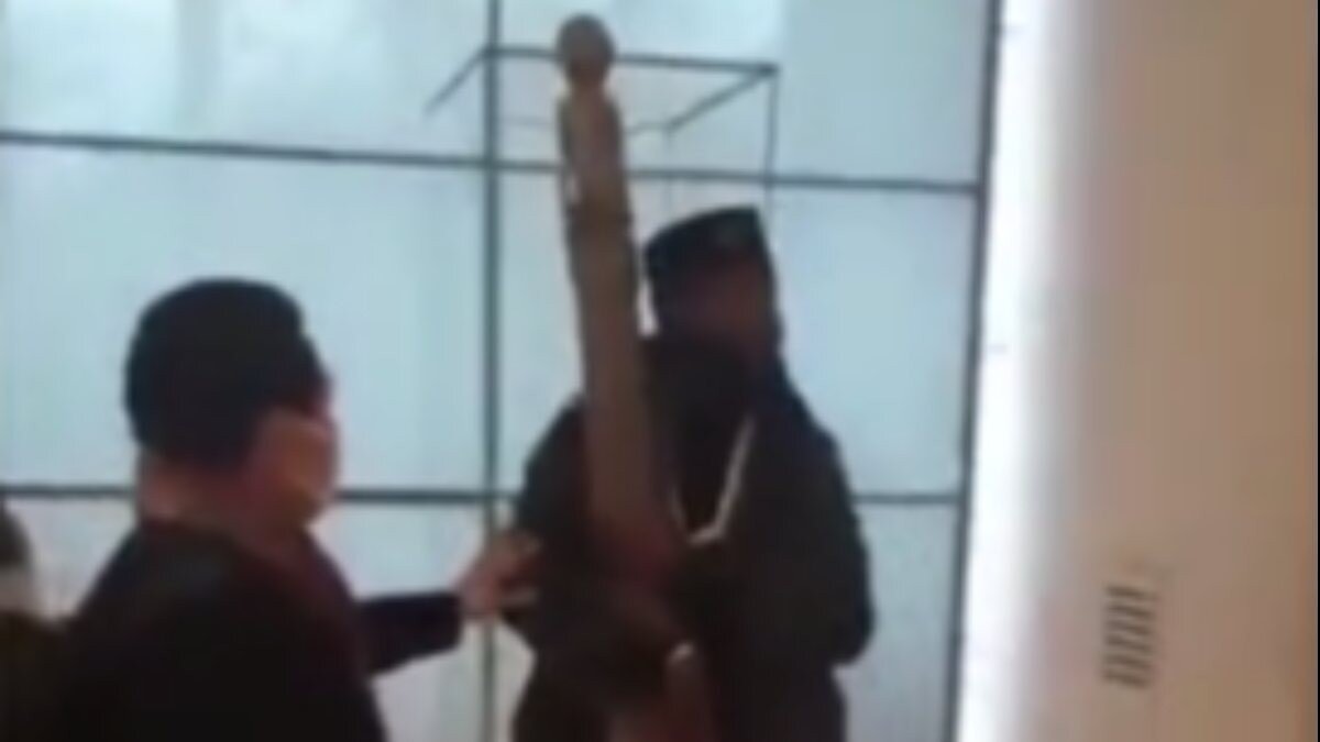 Dün Louvre Müzesi'ne giren Afrikalı bir protestocu, müzede bulunan eseri yerinden söktükten sonra sürükleyerek götürmeye çalıştı.