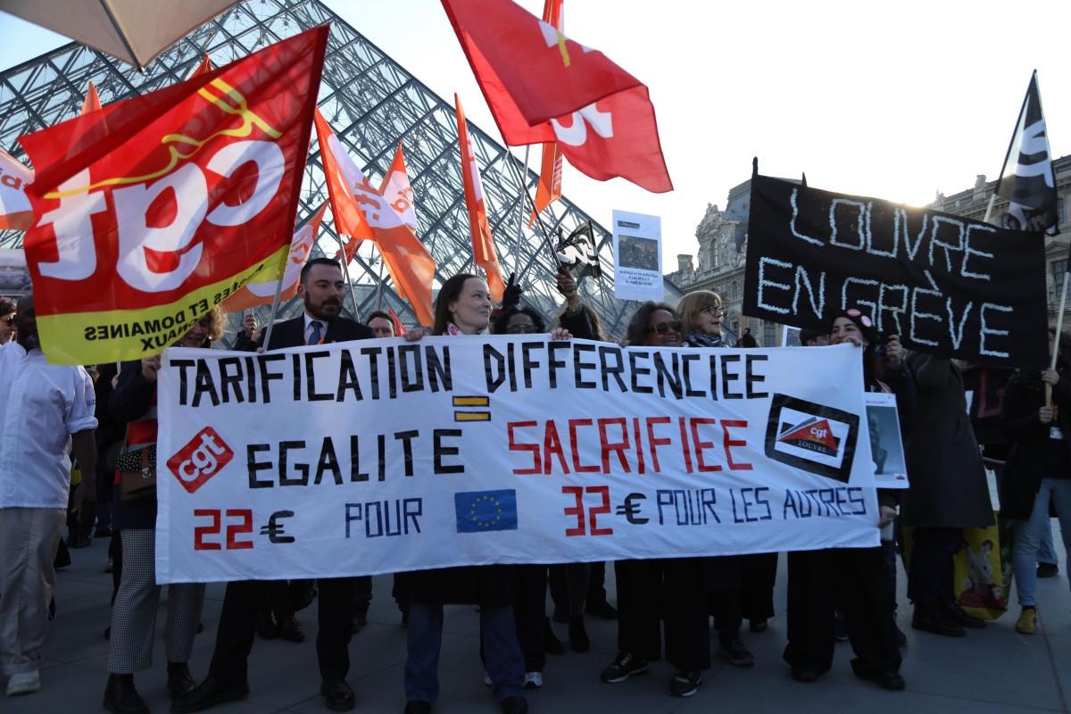 Kötü çalışma koşulları ve güvenlik eksikliklerini protesto eden müze çalışanları ise Louvre’un önünde toplanarak “Louvre Müzesi grevde” yazılı pankartlar açtı.
