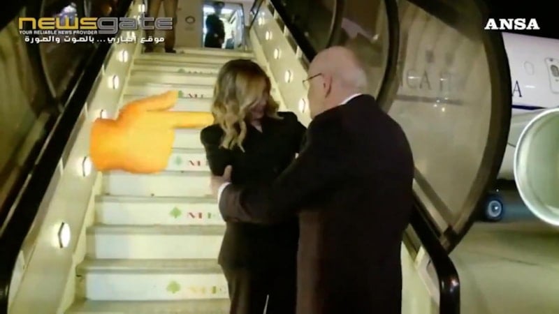 İtalyan lider Meloni'yi uçağının önünde bekleyen Mikati, uçaktan ilk inen kadın diplomatı Meloni sanarak selamlayıp öptü.