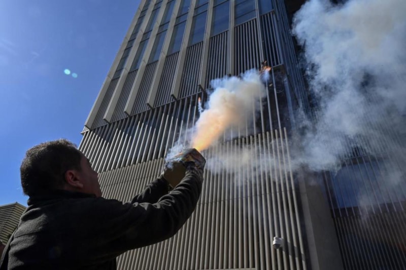 Bazı göstericiler Merkez Bankası'na havai fişek fırlattı, bazıları ise bina önündeki yolu trafiğe kapatarak araç lastiklerini ateşe verdi.