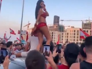 Lübnan'daki protestolara dansöz de katıldı VİDEO