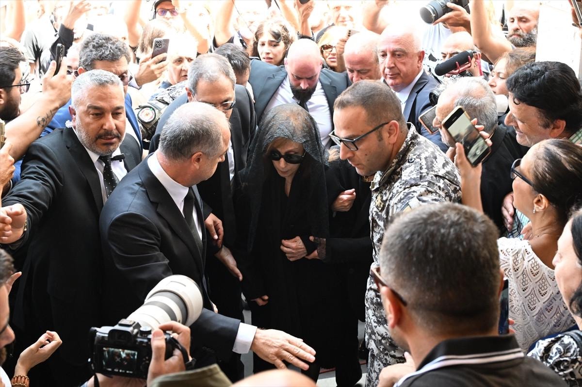 Kızı Rima ve Lübnan Cumhurbaşkanı Joseph Avn'ın eşi Nimet Avn eşliğinde oğlu Ziyad Rahbani'ye son vedasını yapan Feyruz, kiliseden ayrılarak taziye salonunda taziyeleri kabul etti.
