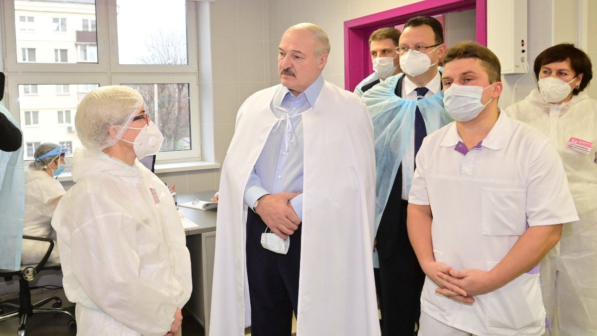 Doktorlarla sohbet eden Lukaşenko ülkede korona virüs vakaları ve alınan önlemlere dair bilgiler aldı.