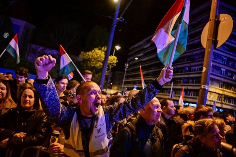 Orban'ın rakibi Magyar'ı tebrik etmesi ve seçimi kaybettiğini kabullenmesinin ardından Magyar destekçileri cadde ve sokaklara döküldü.