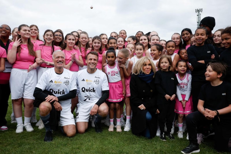 First Lady Brigitte Macron'un liderliğindeki etkinlik, çocuk sağlığı yardım kuruluşuna destek amaçlı düzenlendi ve eski Dünya Kupası kazananları Laurent Blanc ve Didier Deschamps da katıldı.