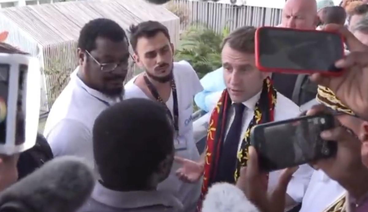 Macron söylediği hiçbir sözle kalabalığı sakinleştirmeyi başaramadı.